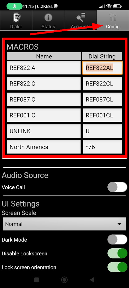 แต่ก็มีวิธีการหนึ่งซึ่งสามารถใช้งานได้ดี ก็คือไปสร้าง MACROS ไว้ในเมนู Config ของ DVSwitch Mobile